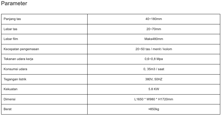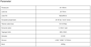 Kecepatan pengemasan 20~50 tas / menit / kolom