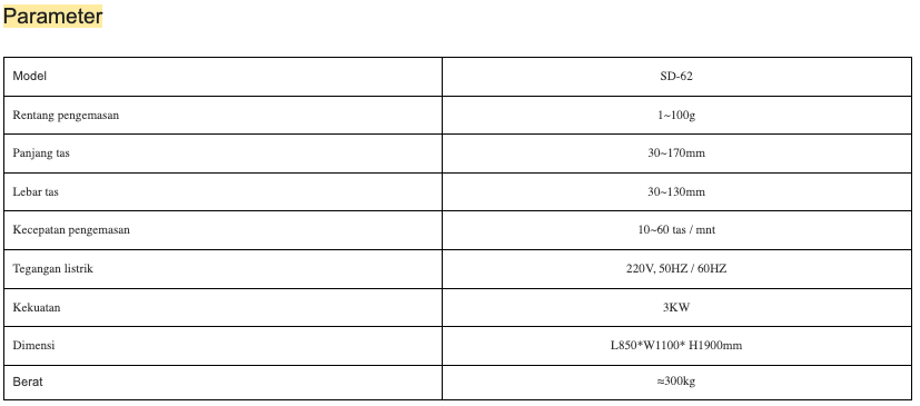 - > Metode penyegelan: penyegelan tiga sisi, penyegelan belakang.