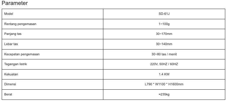 - > Bahan kemasan: polipropilen/polietilen, aluminium foil/polietilen, poliester / berlapis aluminium/polietilen, nilon / polietilen yang diperkuat, kertas/polietilen, dll;